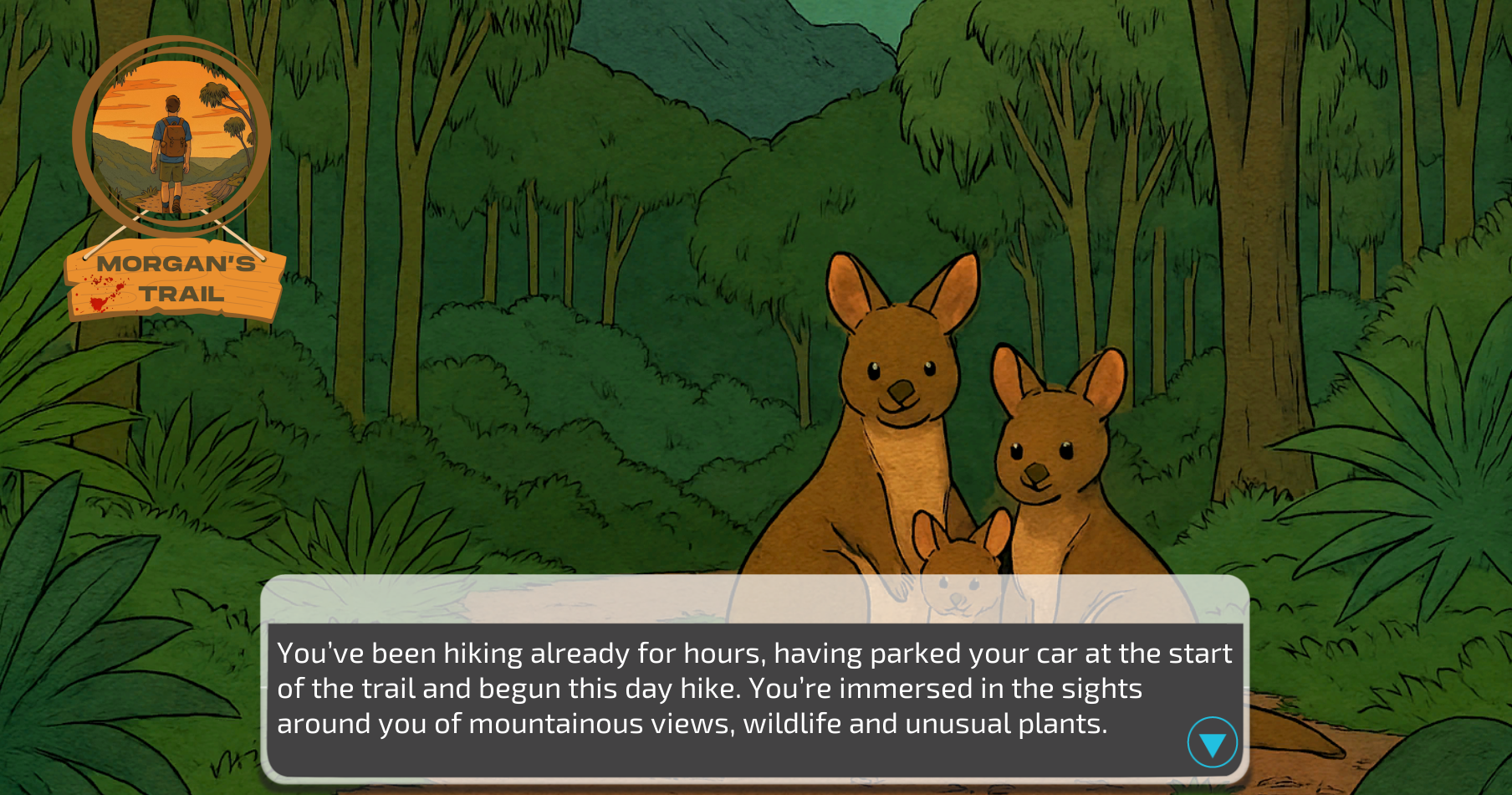 - Learn about nature: discover some unique aspects of the Australian wilderness and native plants and animals, such as bush tucker and venomous creatures (not yet implemented)