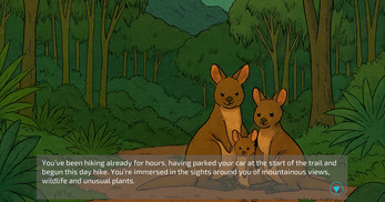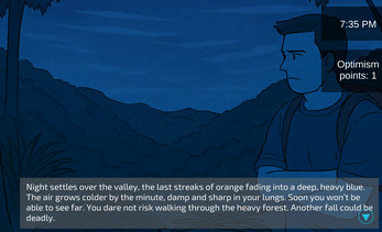 In this survival experience, you step into the role of Morgan, a hiker in the Australian wilderness. You are injured, alone, and fighting the elements with nothing but what can be scavenged. Time, resources, and your own state of mind are limited.
